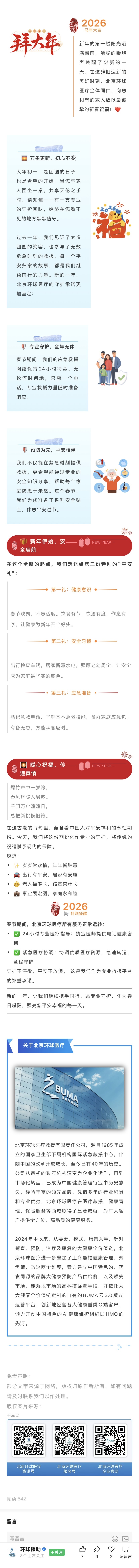 大年初一|北京环球医疗给您拜年!守护不打烊,平安每一天